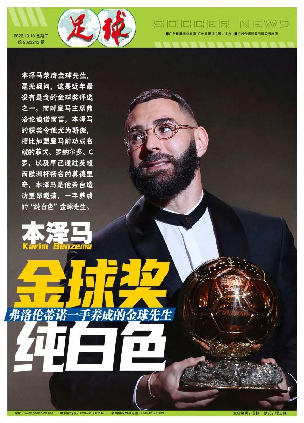 金球獎評選前10位,皇馬獨佔4席,分別是本澤馬、庫爾圖瓦、維尼修斯和莫德里奇,巴黎頒獎晚會的主色調是白色的。唯一的遺憾,是拿到歐冠和西甲雙料冠軍的銀河艦隊,在最佳俱樂部大獎評選中居然輸給了利物浦和曼城。