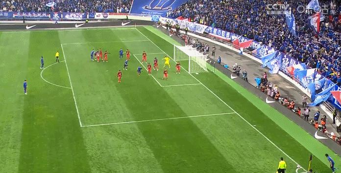 第54分鐘,場上的比分終於被改寫。申花獲得角球機會。徐皓陽開出角球,球旋向球門,顏駿凌判斷失誤,球砸在腿上之後打到馬萊萊的腿上,隨後彈入球網,比分改寫成了1比0。