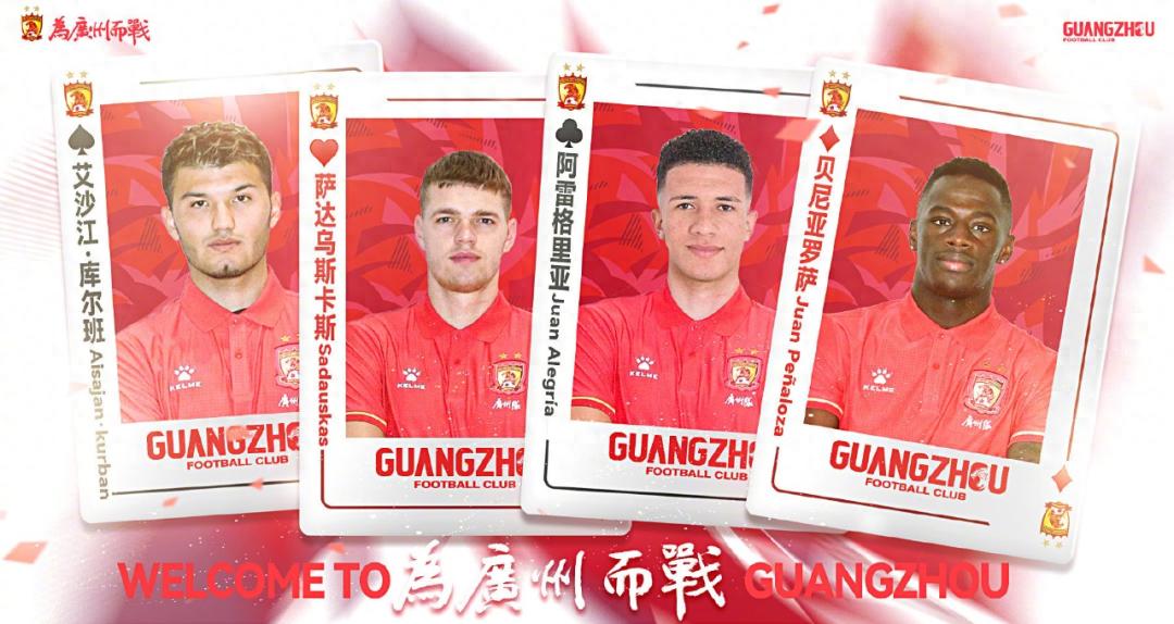 廣州隊引進的3名外援均是根據球隊的戰術要求引進的,其中來自立陶宛的薩達烏斯卡斯司職中衛,27歲的他正處於足球生涯的黃金階段,並在立陶宛超級聯賽有過百場的出場紀錄,曾代表立陶宛U17、U19、U21出戰。他的到來無疑會使球隊防線更加穩固。阿雷格里亞、貝尼亞羅薩都是來自哥倫比亞的進攻型球員,作爲鋒線尖刀,兩人的技術和速度將讓廣州隊的進攻線更具威脅。