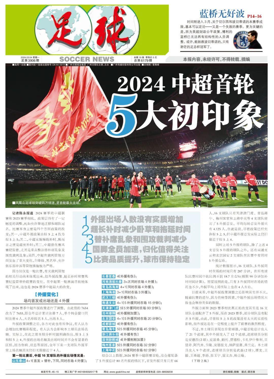 因爲僅僅是一輪比賽,有關裁判管理的相關行動尚未體現出來,但外援政策、超長補時和賽風賽紀監管帶給聯賽的變化,在中超第一輪淋漓盡致地體現了出來,這也是2024賽季中超最大的改變。