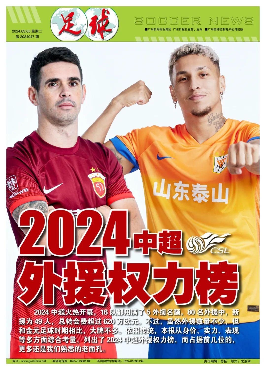 記者寒冰報道 2024中超火熱開幕,16隊都用滿了5外援名額,80名外援中,新援爲49人,總的轉會費超過620萬(歐元,下同),比去年翻倍,已有觸底反彈跡象。不過,雖然外援數量不少,但和金元足球時期相比,大牌不多。依照傳統,本報從身價、實力、表現等多方面綜合考量,列出了2024中超外援權力榜。
