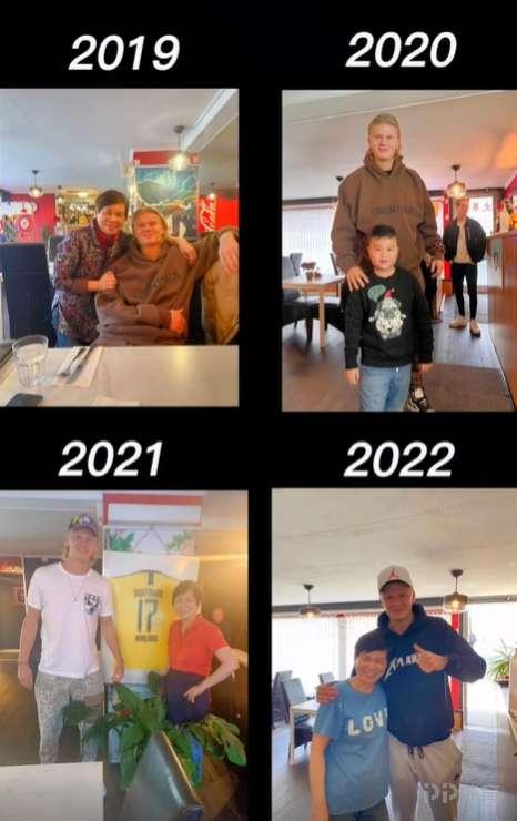 據老闆娘透露,哈蘭德每年夏天返回挪威,都會去喫咕咾雞,自己還收藏了哈蘭德簽名的多特球衣。