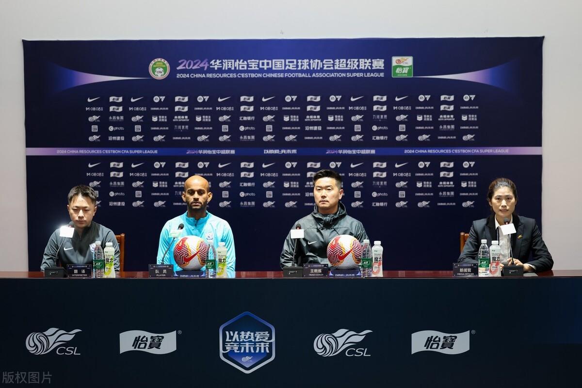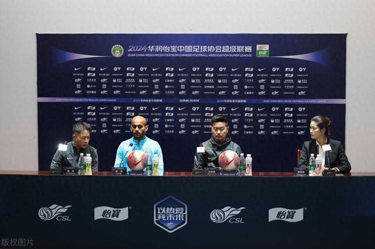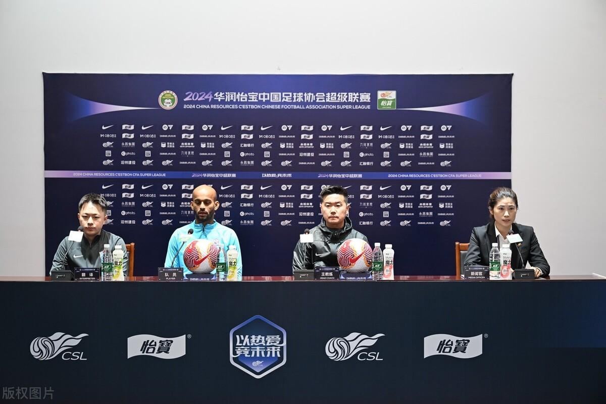 2024年3月9日,2024中超聯賽第2輪前瞻,滄州雄獅賽前新聞發佈會,肇俊哲攜埃韋爾出席。