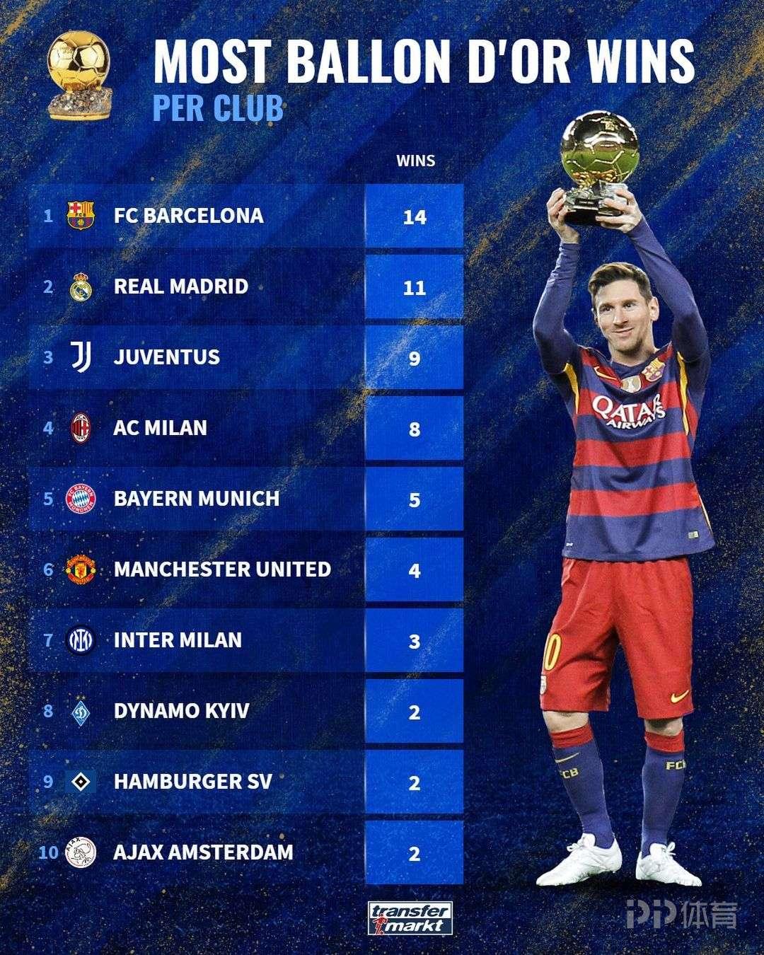 獲得金球獎的西甲球員全部出自皇馬和巴塞羅那,獲得金球獎的意甲球員出自AC米蘭、尤文圖斯、國際米蘭,獲得金球獎的德甲球員出自拜仁慕尼黑、漢堡、多特蒙德、門興,獲得金球獎的英超(包括前身英甲)球員出自曼聯、利物浦、布萊克浦。