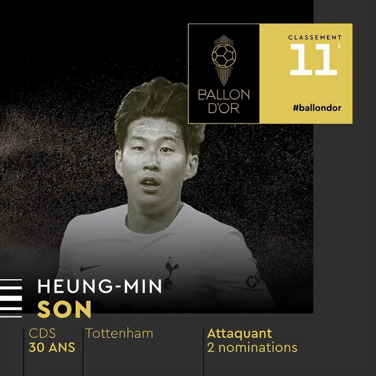 在當今亞洲足壇,孫興慜是毫無爭議的頭號人物。在2022年金球獎評選中,孫興慜也再次刷新了亞洲球員的最高排名紀錄。在本次金球獎評選中,孫興慜排在了第11位!