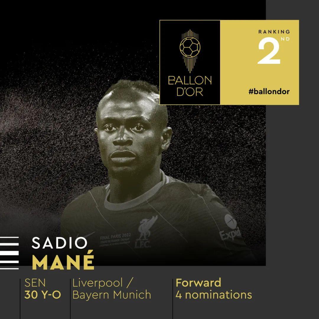 金球獎具體排名中,本澤馬第一,馬內第二,德布勞內第三。前十名如下: