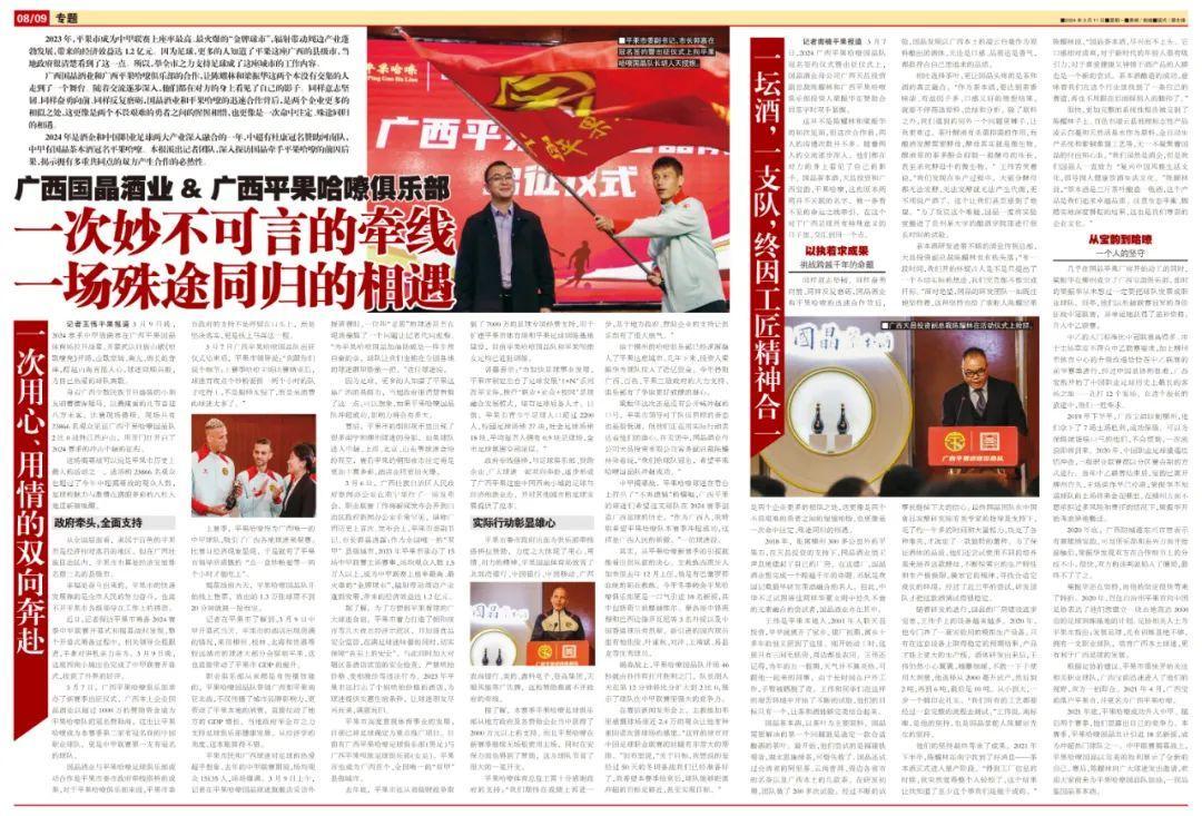 這並不是陳耀林和梁振華的初次見面,但這次合作前,兩人的溝通次數並不多。隨着兩人的交流逐步深入,他們都在對方的身上看見了自己的影子。國晶茶本酒、天昌投資和廣西寶韻、平果哈嘹,這些原本兩兩並不關聯的名字,被一條看不見的命運之線牽引,在這個對於廣西足球具有特殊意義的日子裏,交匯到同一個點。