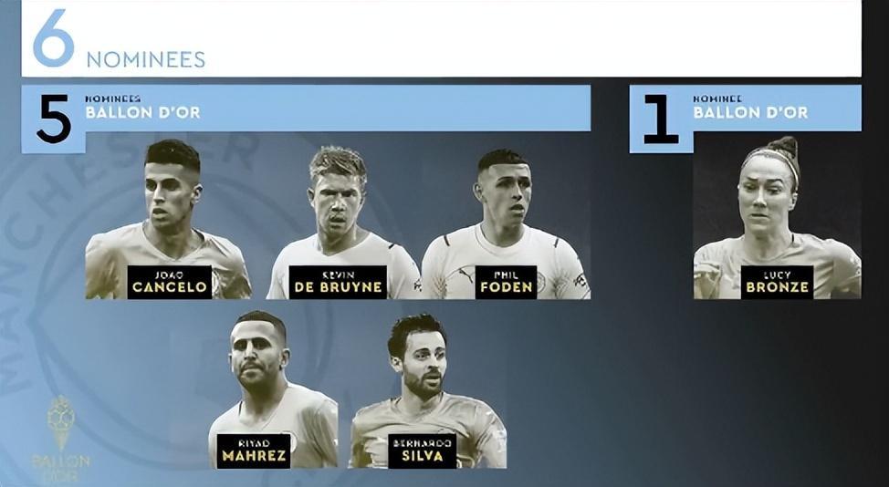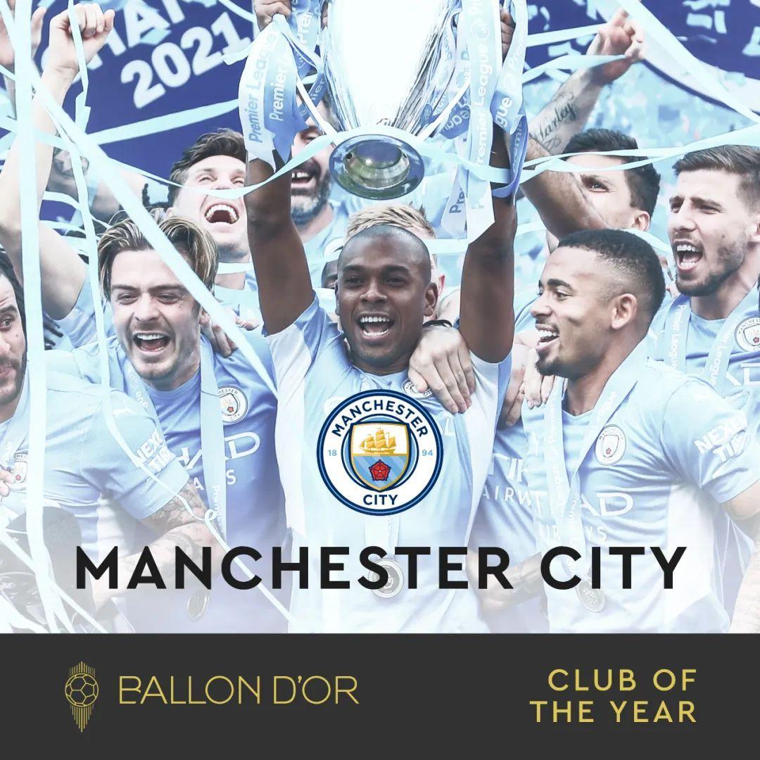 今年,《法國足球》官網對曼城獲獎的描述是:“一家英格蘭俱樂部接替另一家英格蘭俱樂部獲得此獎。曼城有6名球員獲得金球獎提名,位列利物浦(6人)和皇馬(5人)之前。雖然曼城在足總盃半決賽被利物浦淘汰,歐冠在兩場瘋狂對決中被皇馬淘汰,但他們最終獲得了英超冠軍,領先利物浦1分。”