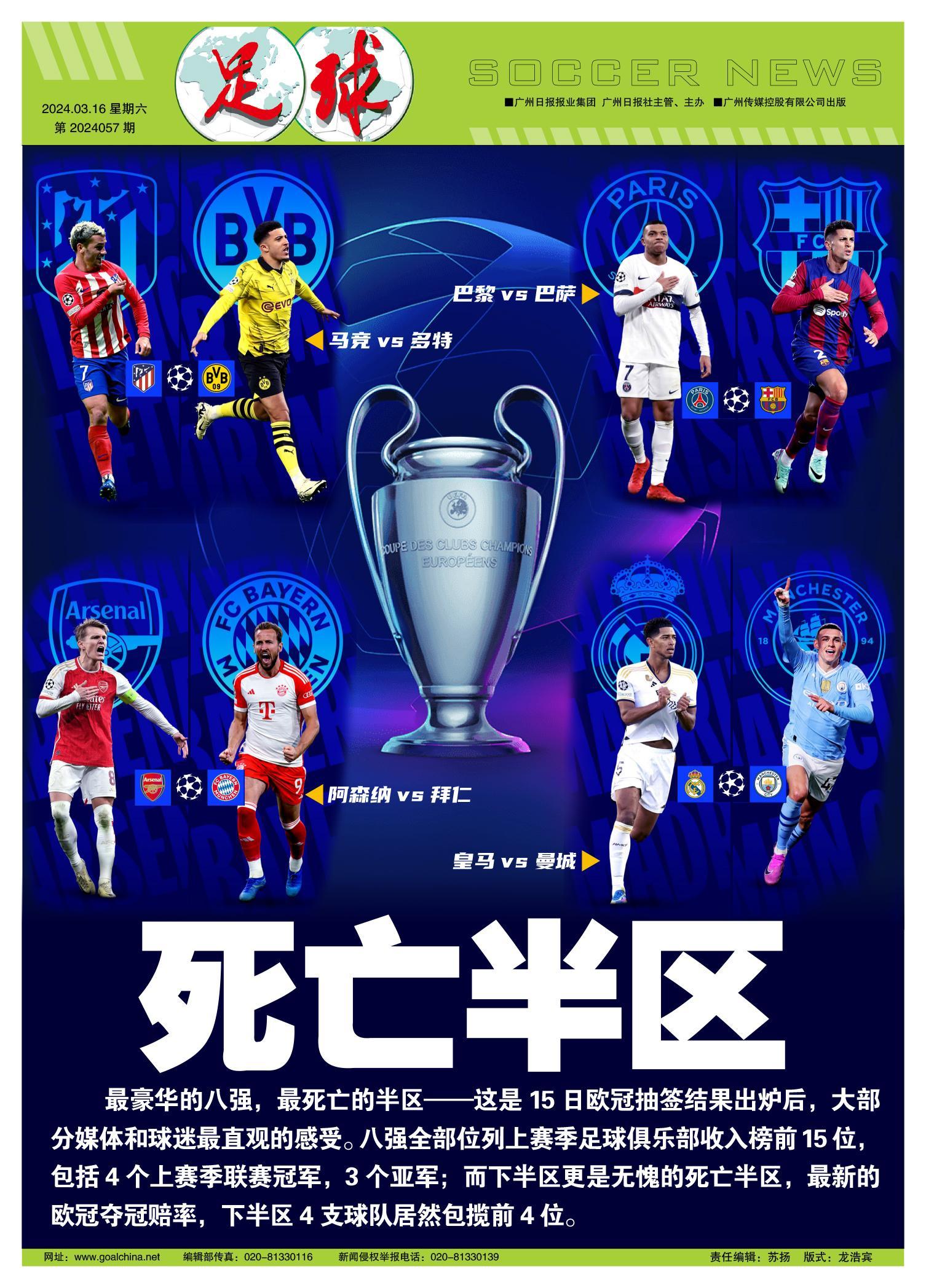 記者寒冰報道 最豪華的八強,最死亡的半區,這是15日歐冠抽籤結果出爐後,大部分媒體和球迷最直觀的感受。