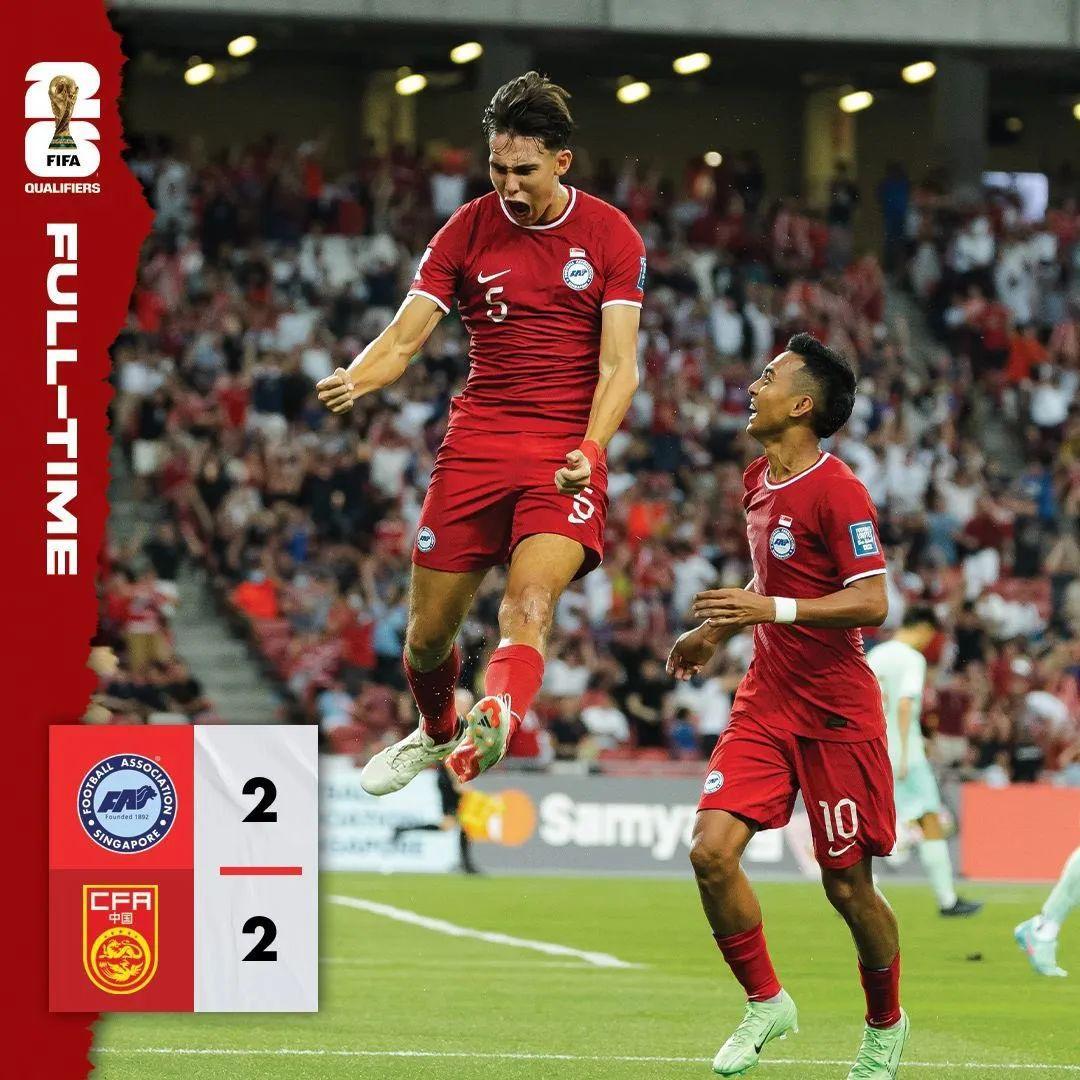 對於新加坡足球而言,這是一個值得慶祝和紀念的平局。新加坡足球最近能與之相比的成就,還是2019年10月客場逼平世界排名領先63位的約旦。現在能從中國隊身上拿到1分,自然是比熱身賽更值得驕傲的成績。
