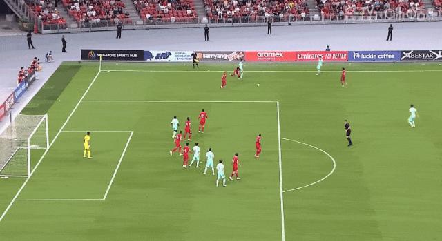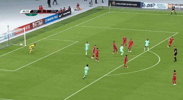 就在所有人都以爲國足輕鬆獲勝的時候,下半場風雲突變,第53分鐘,新加坡替補登場的拉姆利面對國足三人防守,一腳威脅不大的禁區外掃射,折射後卻中柱入網,新加坡隊扳回1球。