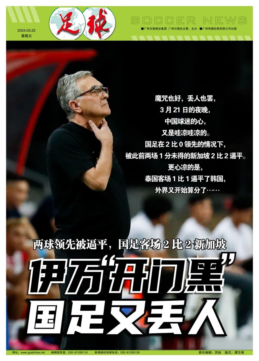記者陳永報道 魔咒也好,丟人也罷,3月21日的夜晚,中國球迷的心,又是哇涼哇涼的——2比0領先的情況下被此前兩場1分未得的新加坡2比2逼平,更心涼的是,泰國客場1比1逼平了韓國,外界已經開始算分了。