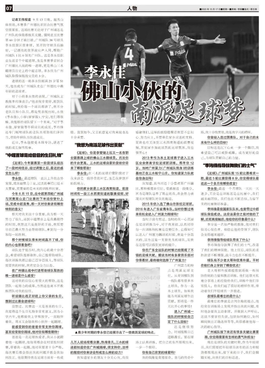 ◆《足球》:你是李營健之後又一名在職業聯賽踢上球的佛山三水籍球員,而且你的平臺更高,三水的足球啓蒙階段給你帶來了哪些幫助?