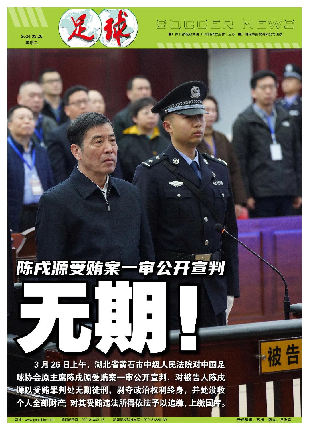作爲中國足球曾經的掌門人,陳戌源此次被判無期徒刑,是其貪污受賄、濫用職權應得的懲罰,他爲多個足球俱樂部和地方足協在賽事安排、聯賽晉級、裁判判罰等事項上謀取不正當利益,嚴重破壞足球領域公平競爭秩序和行業生態環境,給國家足球事業造成嚴重損害,並且營私舞弊,爲他人謀取職務提拔、調整,中國足球的不正之風也在他在任的時期內愈刮愈烈。