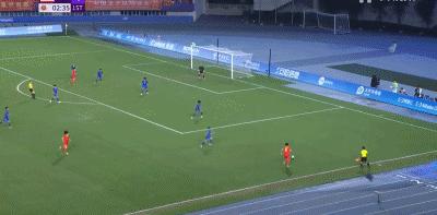 開場不到3分鐘,李夢雯右路套上接應後傳中,王珊珊遠距離1V2頭球破門,中國女足1-0領先。