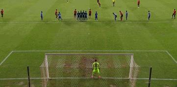 第20分鐘,金鐘佑任意球直接攻門,劉殿座飛身將球化解。