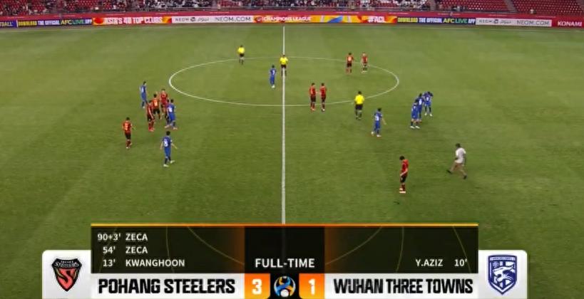 第93分鐘,澤卡禁區左側單刀球推射遠角得手,浦項制鐵擴大比分至3-1。