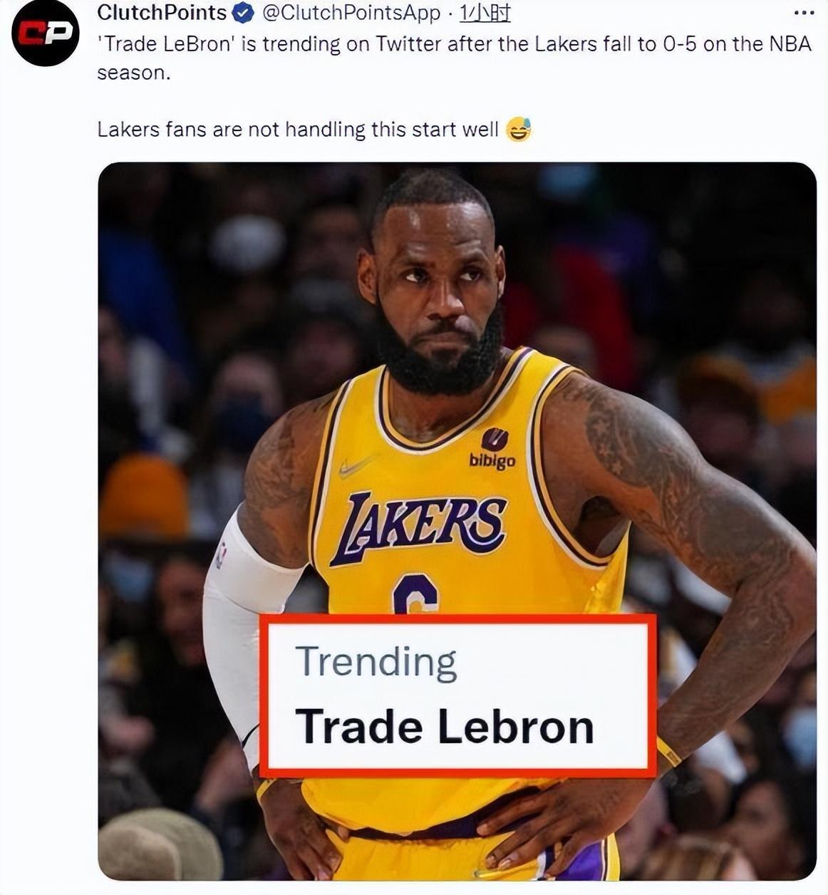 湖人遭遇開季5連敗,“交易詹姆斯”登上推特熱搜