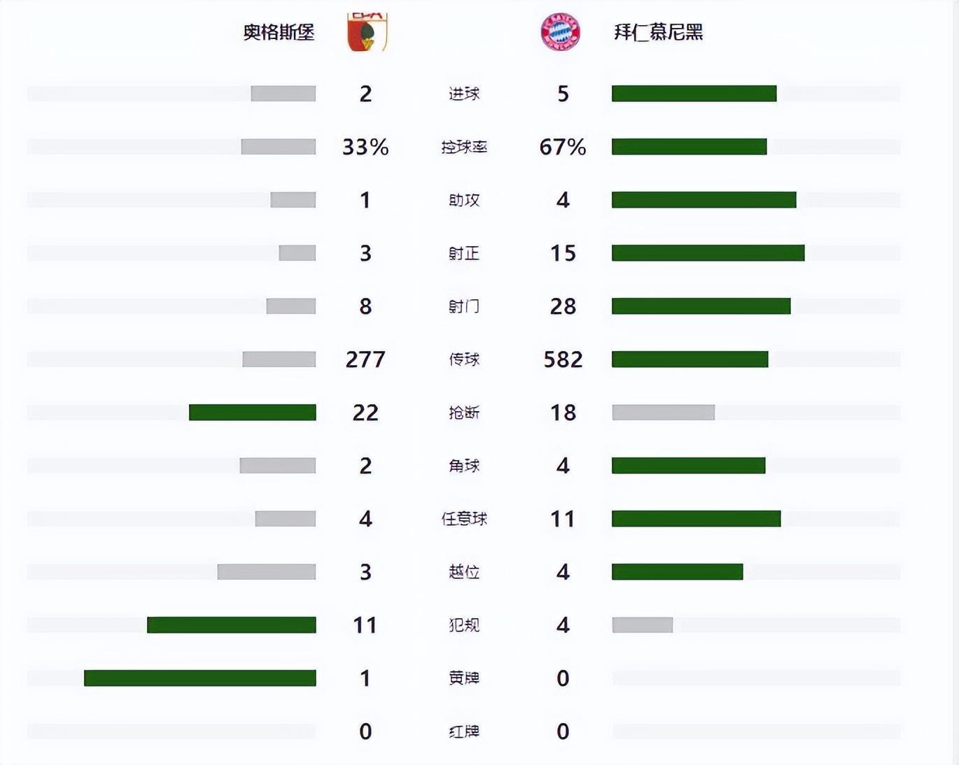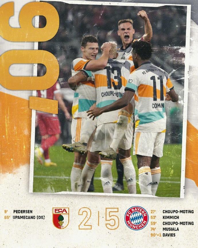 在最近兩個賽季聯賽客場面對奧格斯堡,拜仁都輸了。在32天前,拜仁剛在WWK競技場0-1輸給奧格斯堡,如今他們終於用一場5-2完成復仇。
