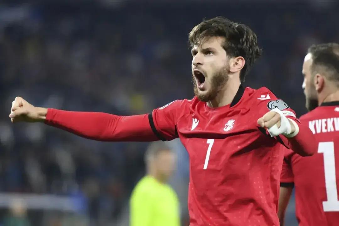 格魯吉亞能拿到歐洲盃入場券,得益於名額照顧。歐國聯第4級別的4個小組第一,擁有專屬的1個歐洲盃決賽圈名額。2020年11月的歐洲盃預選賽附加賽,格魯吉亞主場0比1輸給潘德夫領銜的北馬其頓,成全了對手的歐洲盃首秀。這一次,格魯吉亞幸運地在點球大戰上擊敗了20年前的歐洲盃冠軍希臘,等待了30年,他們終於圓夢。