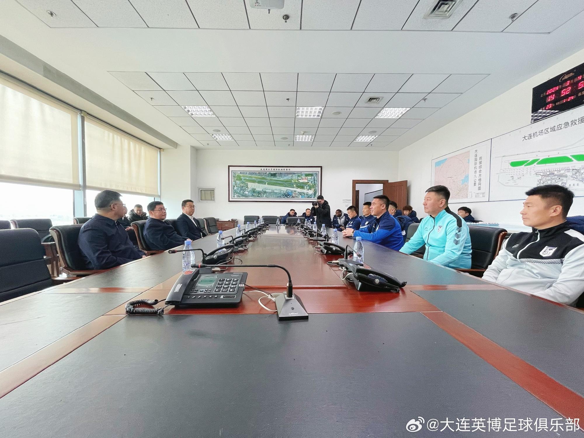 去年年底,統順建設董事長王魁挺身而出,接管剛剛衝甲但深陷困境的俱樂部,扛起大連足球大旗。經過短期調整,英博迅速步入正軌取得開局4連勝的佳績,成爲中甲一股不可忽視的力量。今年首個主場賽後,大連市的領導來到休息室看望英博將士。