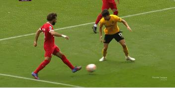 第55分鐘,若塔穿襠直塞,薩拉赫將球掃到後點,加克波輕鬆打空門得手,利物浦扳平1-1。
