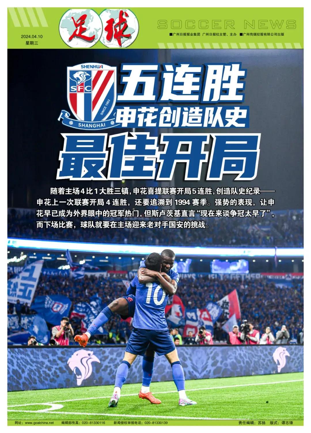 成功的引援,提升了申花的實力和戰鬥力,也在一定程度上幫助球隊打出了隊史最佳聯賽開局。5輪過後,申花不僅是唯一保持全勝的球隊,也是進球最多(13球)和失球最少(2球)的。