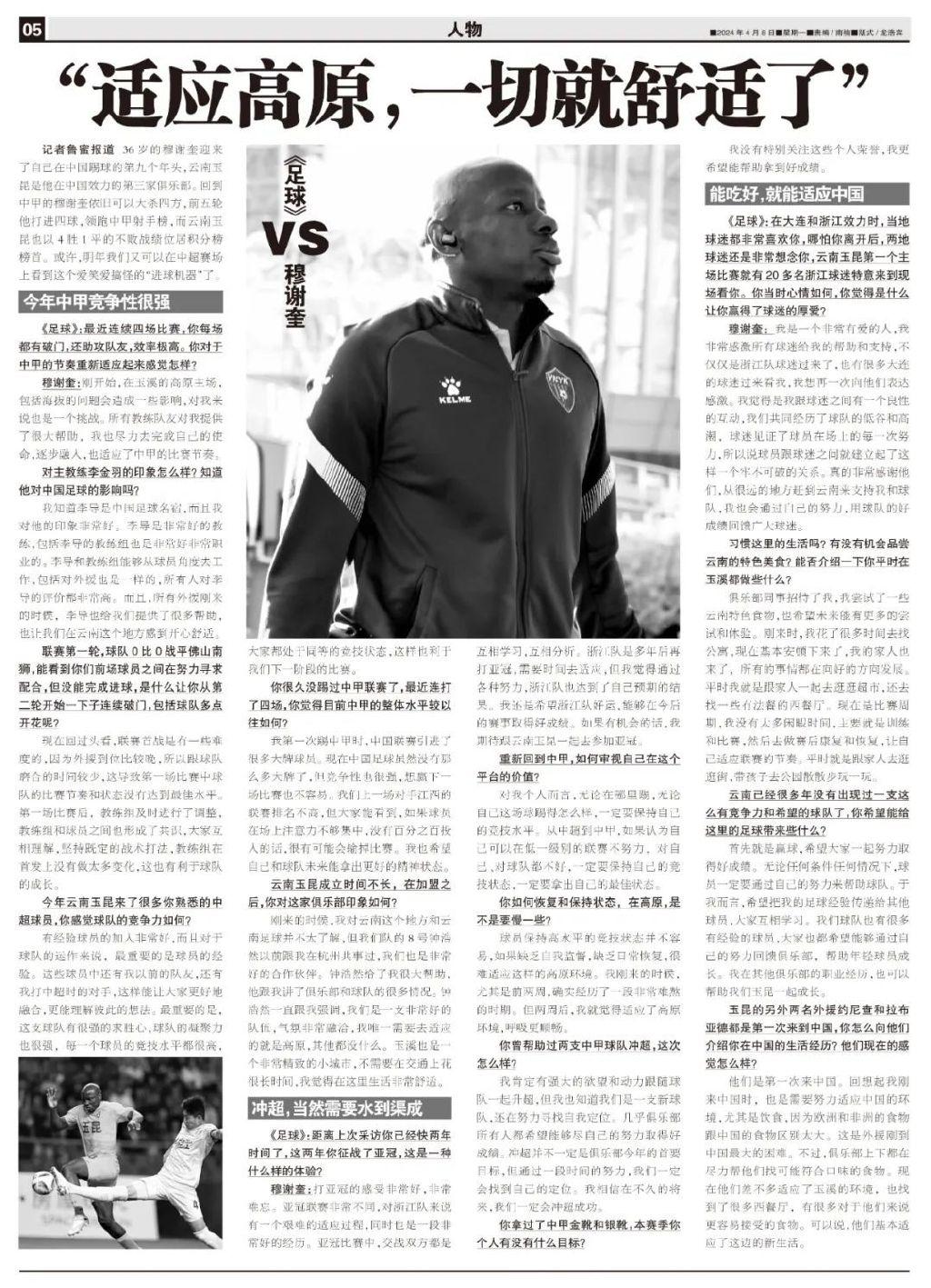 穆謝奎:我是一個非常有愛的人,我非常感激所有球迷給我的幫助和支持,不僅僅是浙江隊球迷過來了,也有很多大連的球迷過來看我,我想再一次向他們表達感激。我覺得是我跟球迷之間有一個良性的互動,我們共同經歷了球隊的低谷和高潮,球迷見證了球員在場上的每一次努力,所以說球員跟球迷之間就建立起了這樣一個牢不可破的關係。真的非常感謝他們,從很遠的地方趕到雲南來支持我和球隊,我也會通過自己的努力,用球隊的好成績回饋廣大球迷。