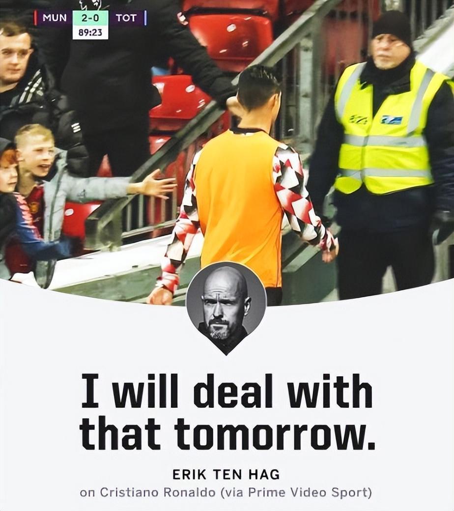 一天後,曼聯官方宣佈對C羅做出隊內停賽一場的處罰,週末不會隨隊前往作客面對切爾西的比賽。而曼晚記者稱,C羅不但被停賽,而且未來3天也不允許跟球隊合練。還有消息稱,C羅被罰款100萬英鎊和要求向全隊道歉。利物浦名宿卡拉格稱滕哈格樹立了自己的權威,完美解決了C羅這事兒。
