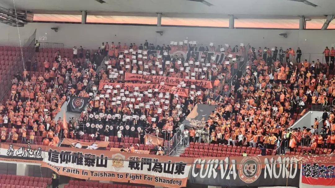 但在比賽結束的那一刻,泰山球迷還是表達了他們的情緒,他們打出了兩個大橫幅標語和衆多的紙片標語,表達了對俱樂部相關方的抗議,併發出了憤怒的吶喊。