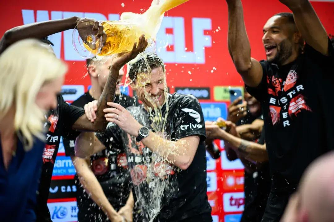 提前5輪奪冠,成爲五大聯賽第1個聯賽冠軍,等待勒沃庫森人的將是漫長的慶典嘉年華。這座人口不到17萬的小城,成爲五大聯賽繼摩納哥(2016/17賽季)之後,拿到聯賽冠軍人口最少的城市。被隊員們用啤酒徹底澆透的阿隆索,差點無法完成發佈會。但他還是強調能夠成爲創造球隊歷史的一份子,與有榮焉。