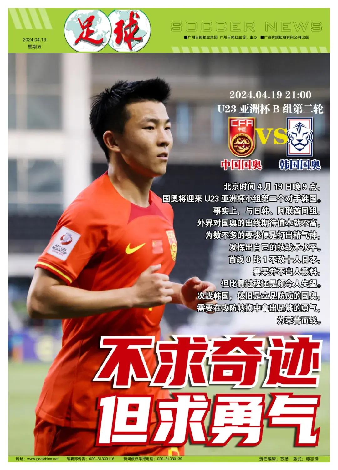 記者魯蜜、寒冰報道 北京時間4月19日晚9點,中國國奧將迎來U23亞洲盃小組第二個對手韓國國奧。事實上,與日韓、阿聯酋同組,外界對國奧的出線期待值本就不高,爲數不多的要求便是打出精氣神,發揮出自己的技戰術水平。首戰0比1不敵十人日本,賽果並不出人意料,但比賽過程還是頗令人失望。次戰韓國,依舊是立足防反的國奧,需要在攻防轉換中展現勇氣、提升效率,爲榮譽而戰。