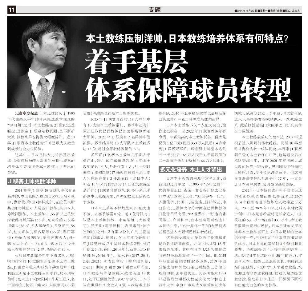 這其中,日本足協大力培養基層教練,爲退役球員轉入教練生涯提供成熟的培養體系等措施是本土教練人才輩出的關鍵。