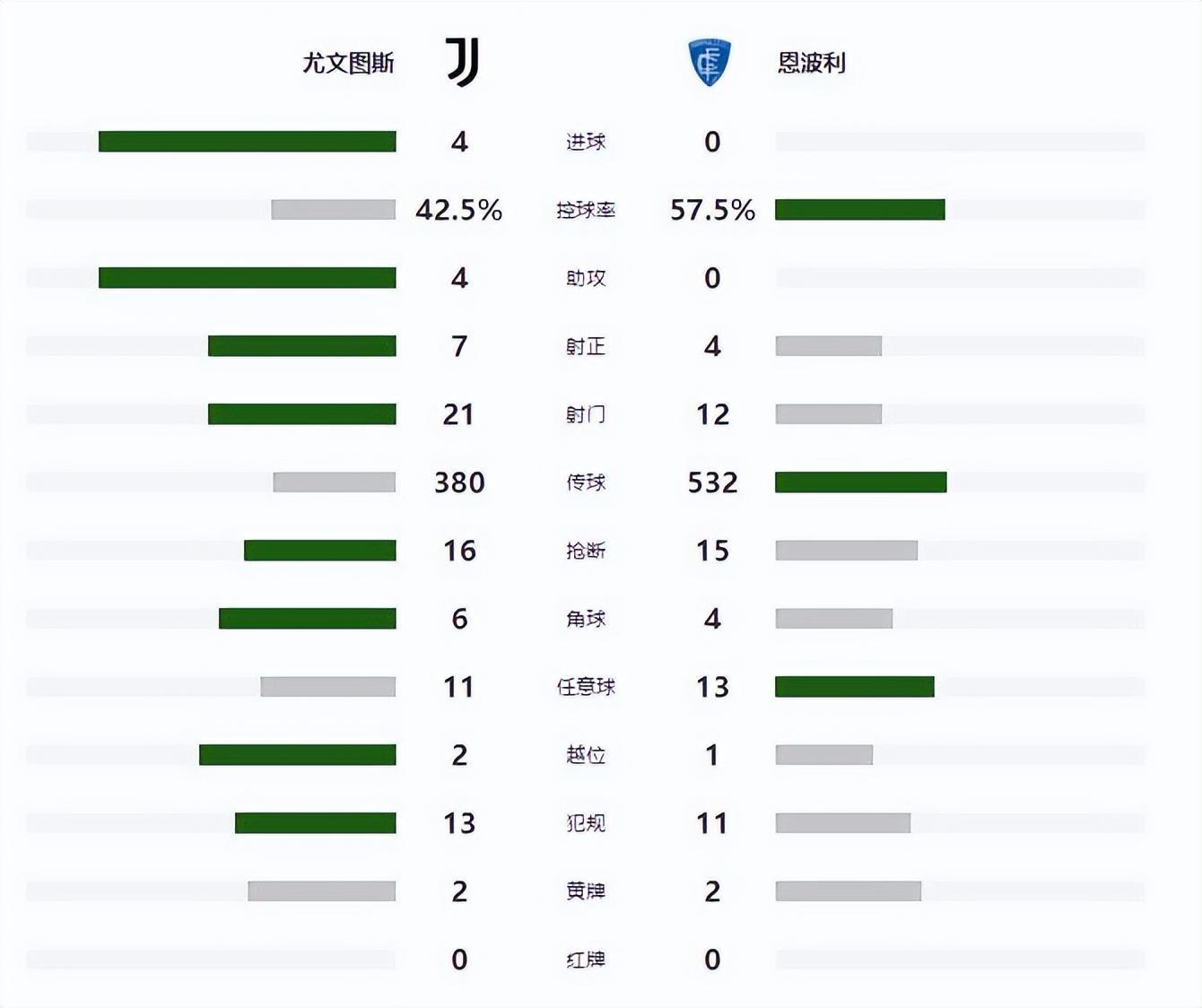 4-0大勝恩波利後,尤文在多賽1場的情況下暫時反超國米1分,上升至意甲第7的位置。這是他們本賽季首次取得意甲2連勝。
