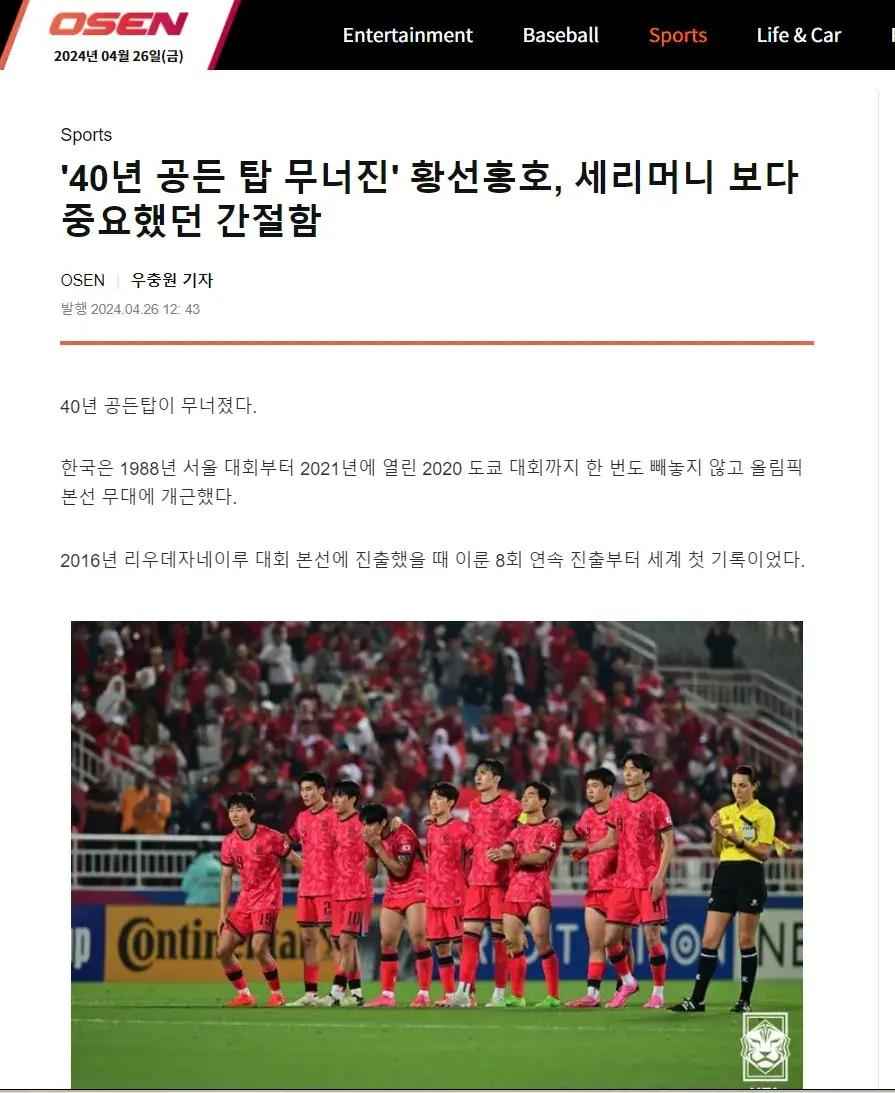 記者寒冰報道 點球不敵印尼U23無緣U23亞洲盃四強,提前宣告了韓國國奧無緣奧運會,這是韓國男足無緣1984年洛杉磯奧運會以來,首次無緣奧運決賽圈,也是韓國U23以上國家隊自1986年世界盃以來,首次無緣世界大賽決賽圈。韓國U20和U23年齡組近年在U20世青賽和奧運會表現都不差:U20國青隊2019年進入U20世青賽決賽,2023年進入四強;韓國國奧2012年倫敦奧運會拿到男足銅牌,2016和2020奧運會連續進入8強。此外,韓國U23隊還拿到亞運會男足3連冠。正是在這樣不斷成功的背景下,時隔40年失去奧運會男足參賽資格更令韓國足壇感到空前的恥辱。