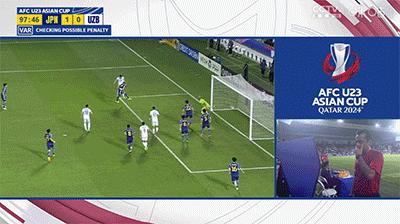 烏茲別克斯坦3分鐘後原本可以扳平比分,將比賽拖入加時賽。日本隊後衛關根大輝禁區內手球被VAR提醒後判罰點球,但替補出場的喀山紅寶石中場拉赫馬諾利耶夫罰出的點球被小久保玲央撲出,力保日本隊奪冠。撲出點球的小久保玲央淚灑賽場,原本補時11分鐘的比賽直到15分鐘才結束。