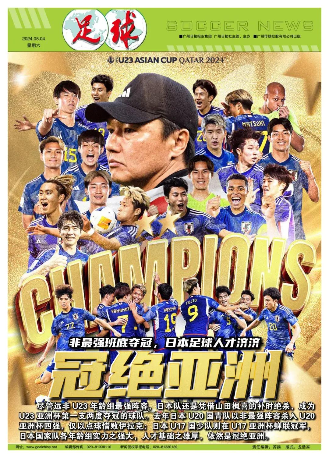混血中場隊長藤田讓瑠儘管在決賽被幾乎完全盯死,仍然憑藉整個賽事的表現當選賽事MVP。不過《日刊體育》也指出,無法聚齊最有實力的適齡球員讓這支日本隊缺乏攻擊力,奪冠更多依靠的是防守的韌度。想要在巴黎奧運會有所突破,必須說服歐洲俱樂部放人,招入久保建英爲首的更多攻擊手,日本隊纔可能繼2012年倫敦奧運會後,再次向獎牌發起衝擊。