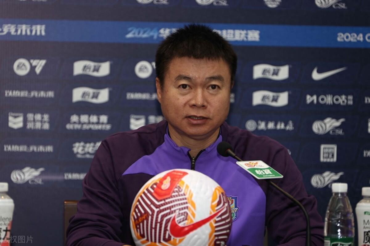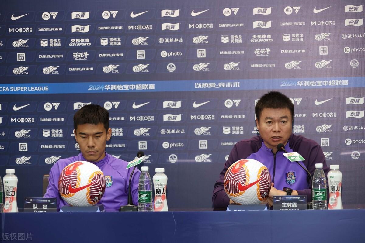 2024年5月3日,河北鄭州,2024中超聯賽第10輪前瞻,天津津門虎賽前新聞發佈會,于根偉攜王秋明出席。