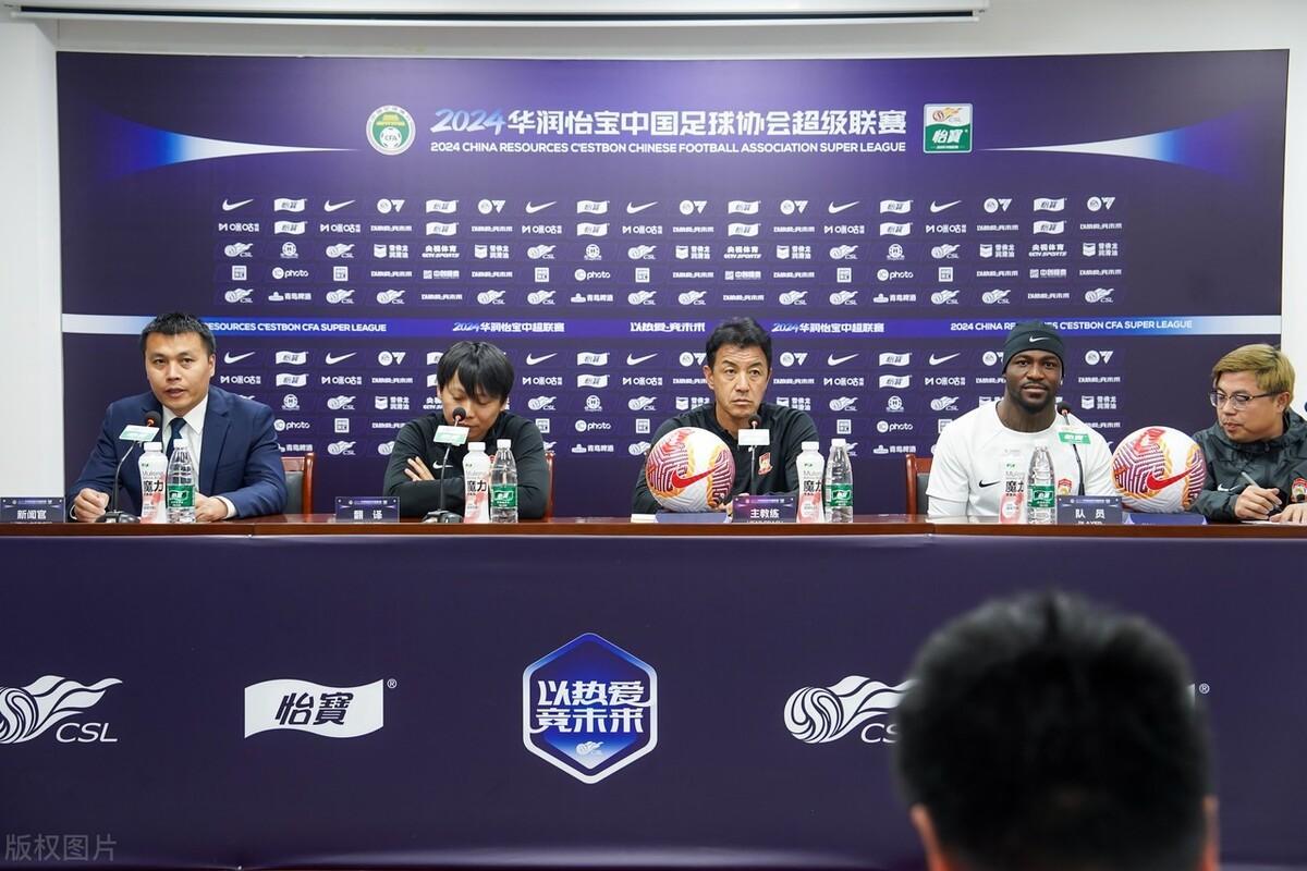 2024中超聯賽第10輪前瞻:青島西海岸寒前新聞發佈會黑崎久志攜里亞斯科斯出席。