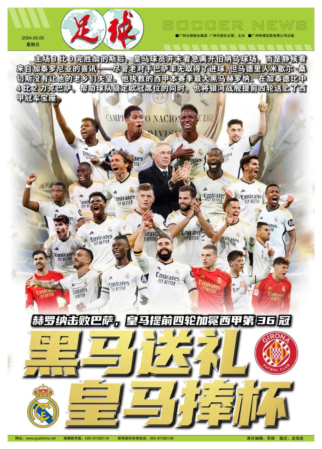 記者寒冰報道 主場3比0完勝加的斯後,皇馬球員並未着急離開伯納烏球場,而是靜候着來自加泰羅尼亞的喜訊——那場“萬衆矚目”的西甲爭二大戰中,儘管老對手巴薩率先取得了進球,但馬德里人米歇爾·桑切斯沒有讓他的老鄉們失望,他執教的西甲本賽季最大黑馬赫羅納,在加泰德比中4比2力克巴薩,幫助球隊鎖定歐冠席位的同時,也將銀河戰艦提前四輪送上了西甲冠軍寶座。