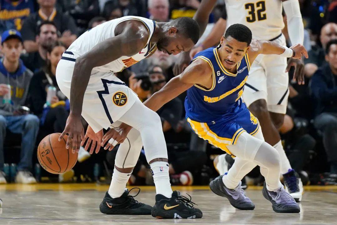 既然是找問題,那肯定是要聚焦勇士最爲混亂的上半場比賽。在第一節比賽裏,勇士就丟掉了40分,英文流解說提供了一個數據,在上個賽季,勇士常規賽階段只有5次在單節比賽裏丟掉了40分的得分,只有一次出現在第一節。勇士這樣一支防守紀律性以及調整能力很強的球隊,很少出現長時間徹底崩潰的情況。不過今天,勇士讓掘金在首節比賽裏投出了接近70%的命中率,給自己下半場的追分挖下了一個大坑,慢熱的表現首發陣容也難辭其咎。