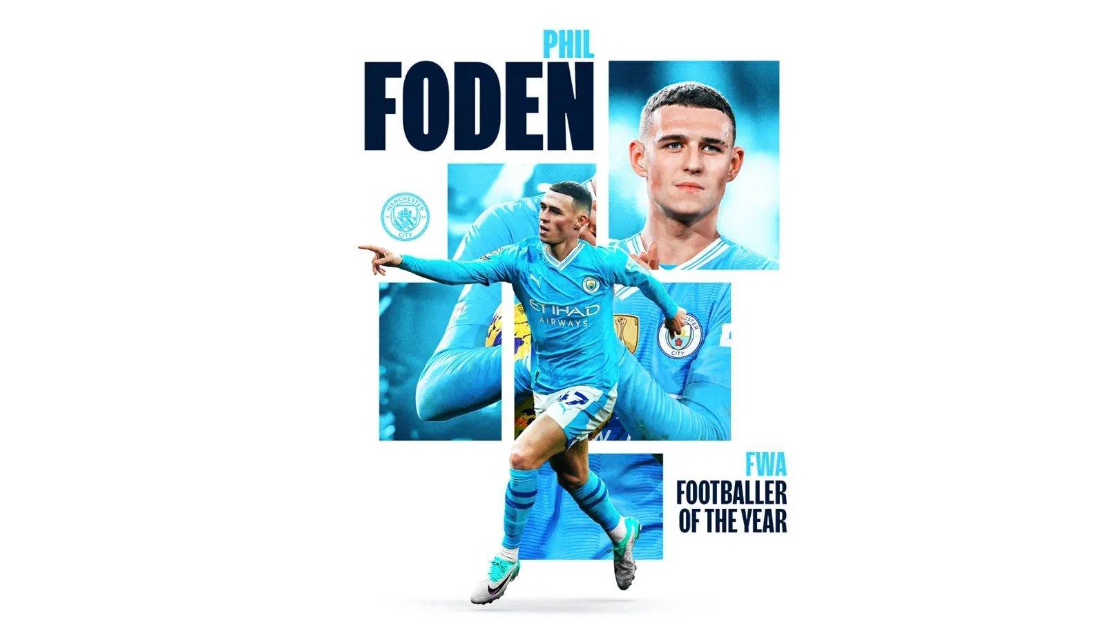 FWA年度最佳大獎授予福登,而且得票數在隊友羅德里分流選票情況下,還有較爲明顯的優勢,證明英格蘭足球記者對福登本賽季表現的認可。