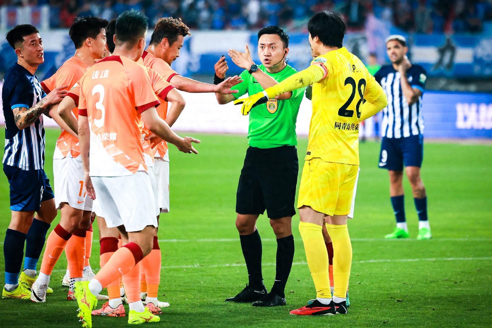 第70分鐘,鄧涵文在禁區內手球,慢動作顯示,鄧涵文大臂緊貼身體,但小臂又緊貼着大臂抬起,主裁判並沒有判罰點球,現場來看,VAR也沒有介入,青島海牛教練組抗議之後拿到了黃牌。