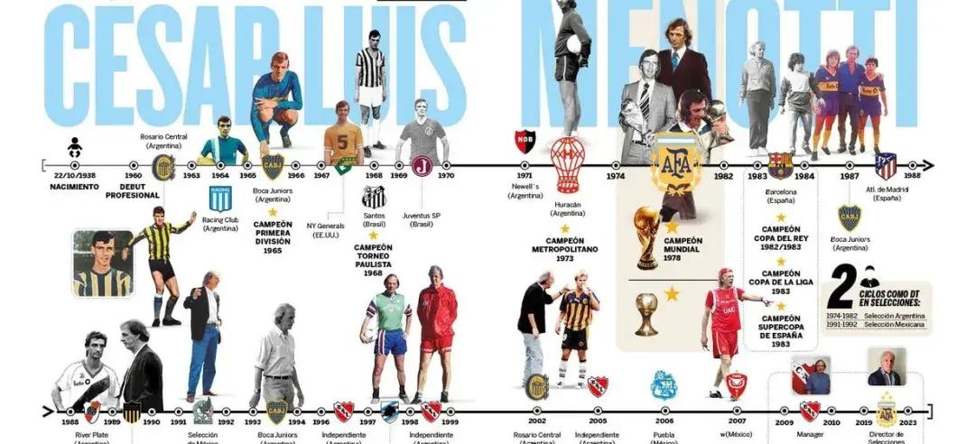 作爲教練,梅諾蒂有三大成就:首先是帶隊拿到1978年世界盃冠軍,讓阿根廷足球正式躋身世界頂級之列;1年後他帶領馬拉多納奪得日本U20世青賽,阿根廷球王就此登上世界足壇舞臺;2020年,已至耄耋之年的梅諾蒂毅然出任阿根廷隊體育總監,協助斯卡洛尼和梅西爲藍白軍團拿到第3座大力神杯。