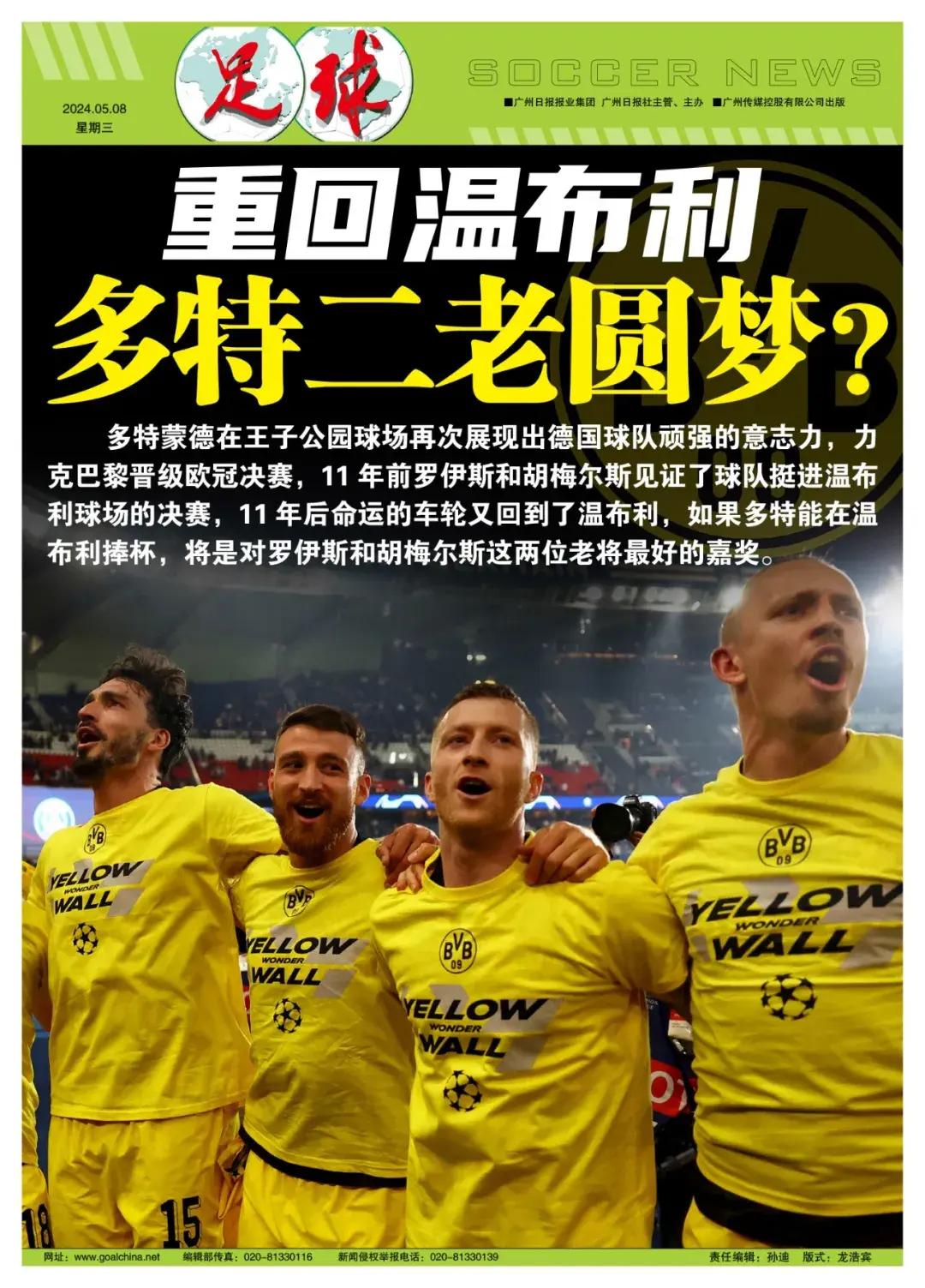 相比大巴黎在主場的得勢不得分,多特蒙德再次表現出德國球隊頑強的意志力。王子公園一役對黃黑軍團而言充滿歷史的巧合:11年前羅伊斯和胡梅爾斯見證了球隊挺進溫布利球場的決賽,11年後命運的車輪又回到了溫布利。當年多特蒙德與皇馬小組賽同組,半決賽淘汰皇馬進入決賽;如今又與大巴黎同組,半決賽重演歷史。