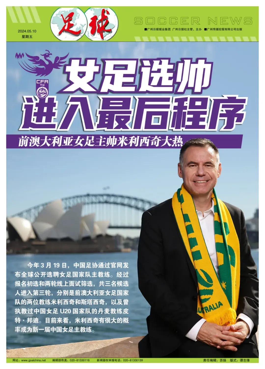 目前在這3名候選人中,2019年帶領澳大利亞女足參加了法國世界盃的米利西奇具有一定的優勢,有很大的概率成爲新一屆中國女足主教練。