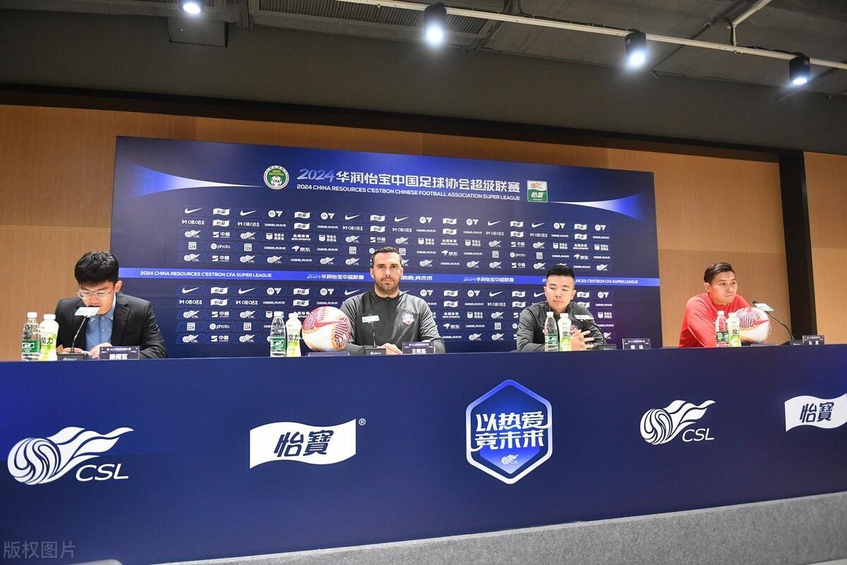 2024中超聯賽第11輪前瞻:梅州客家賽前新聞發佈會巴勃羅攜程月磊出席。