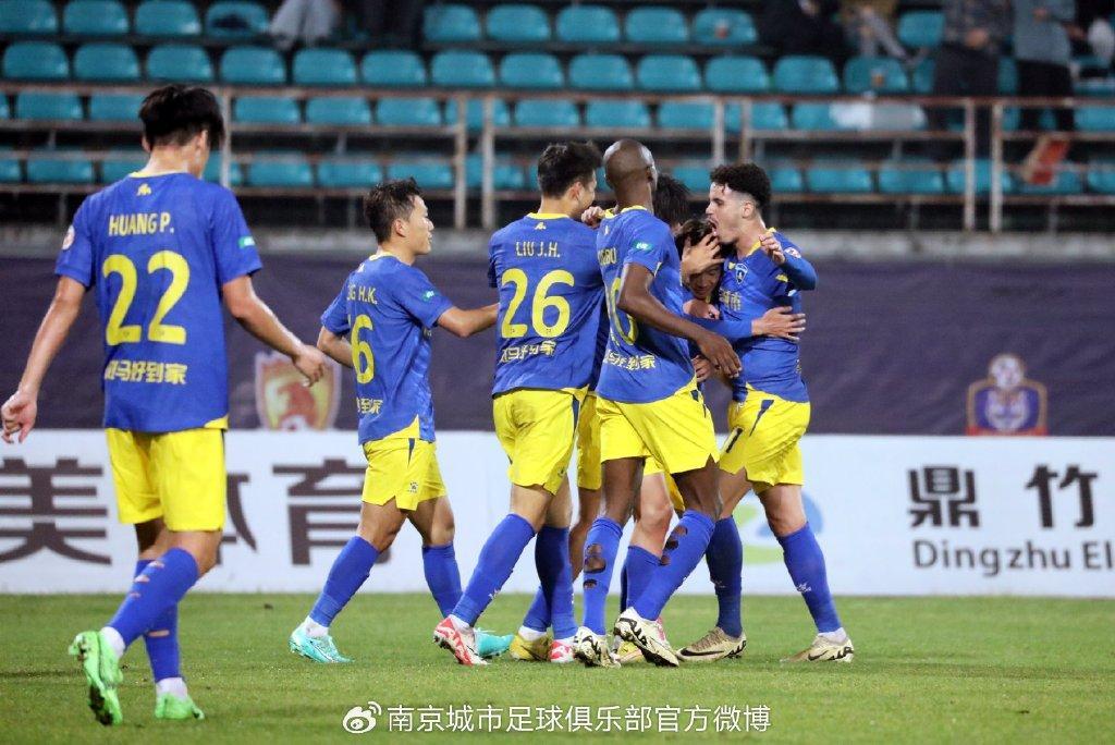 南京城市本場比賽開局打得不錯,第27分鐘,楊賀開出前場右路任意球,人叢中奧格布殺出,用大腿將球擋入球門,1比0領先。