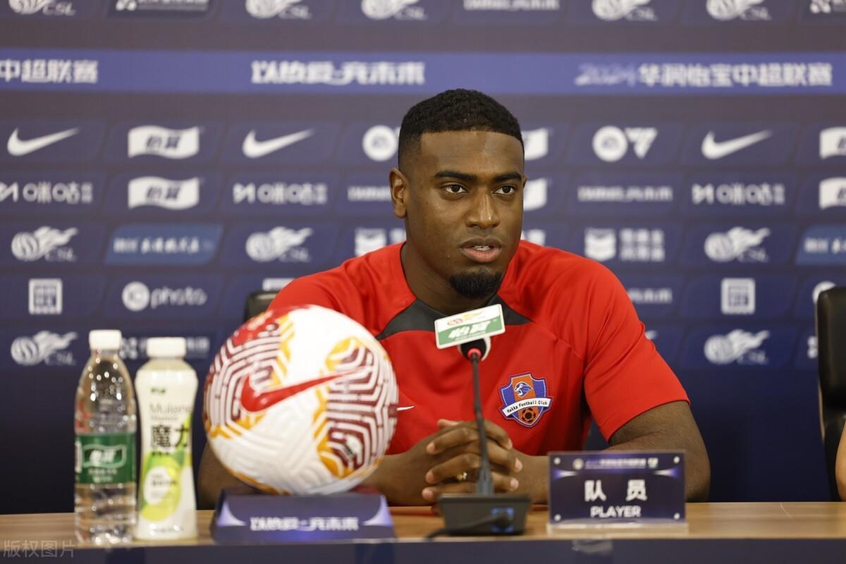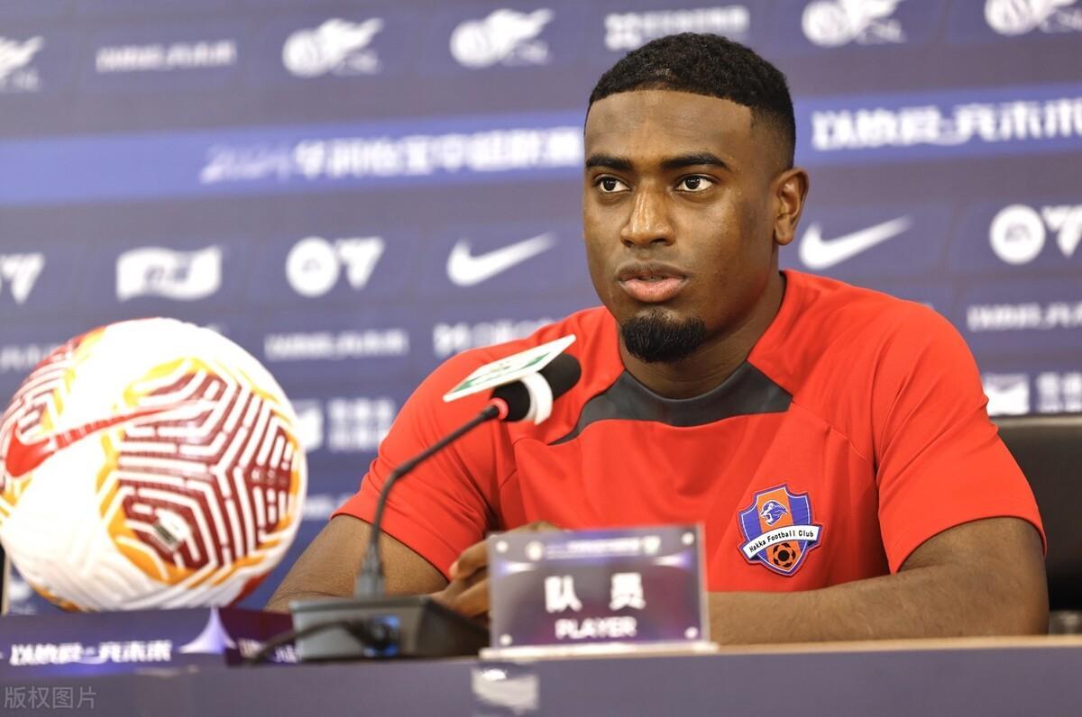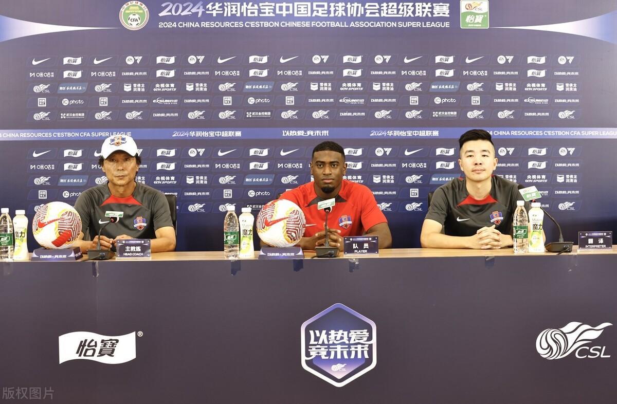 2024年5月24日,湖北武漢,2024中超聯賽第14輪前瞻,梅州客家賽前新聞發佈會,曲剛攜康拉德出席。
