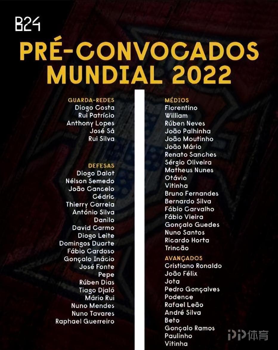 葡媒Correio da Manhã透露了葡萄牙世界盃初選名單,C羅領銜,B費、B席在列。